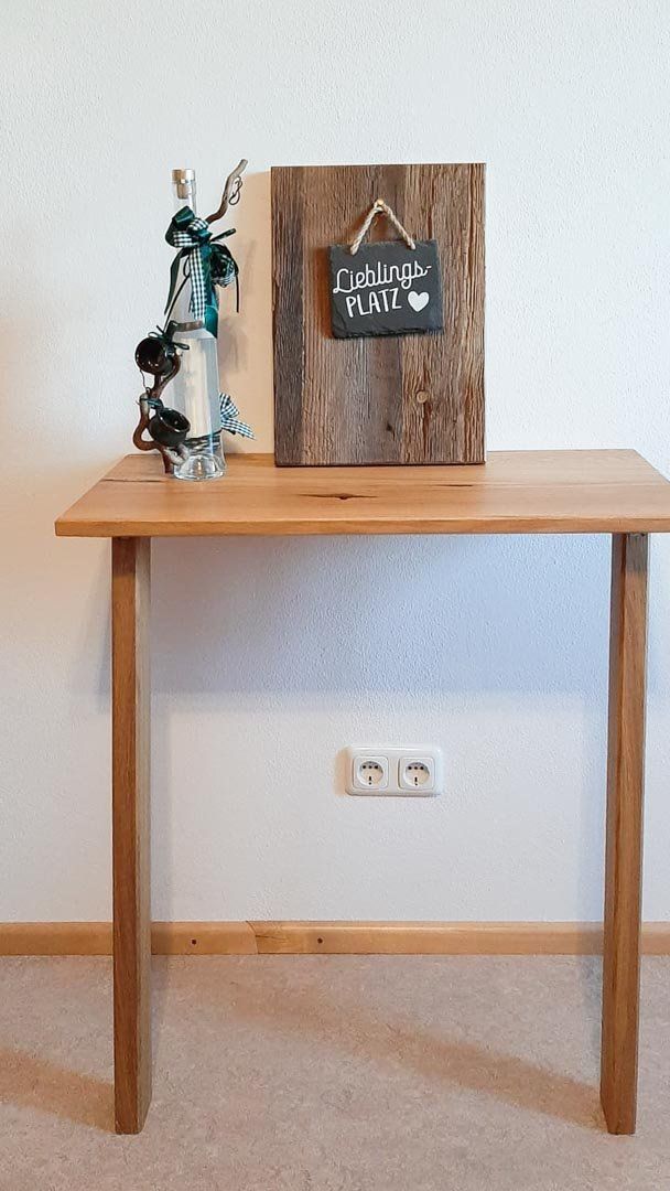Der Anlehntisch kann durch die schmale und schlichte Form flexibel und individuell eingesetzt werden