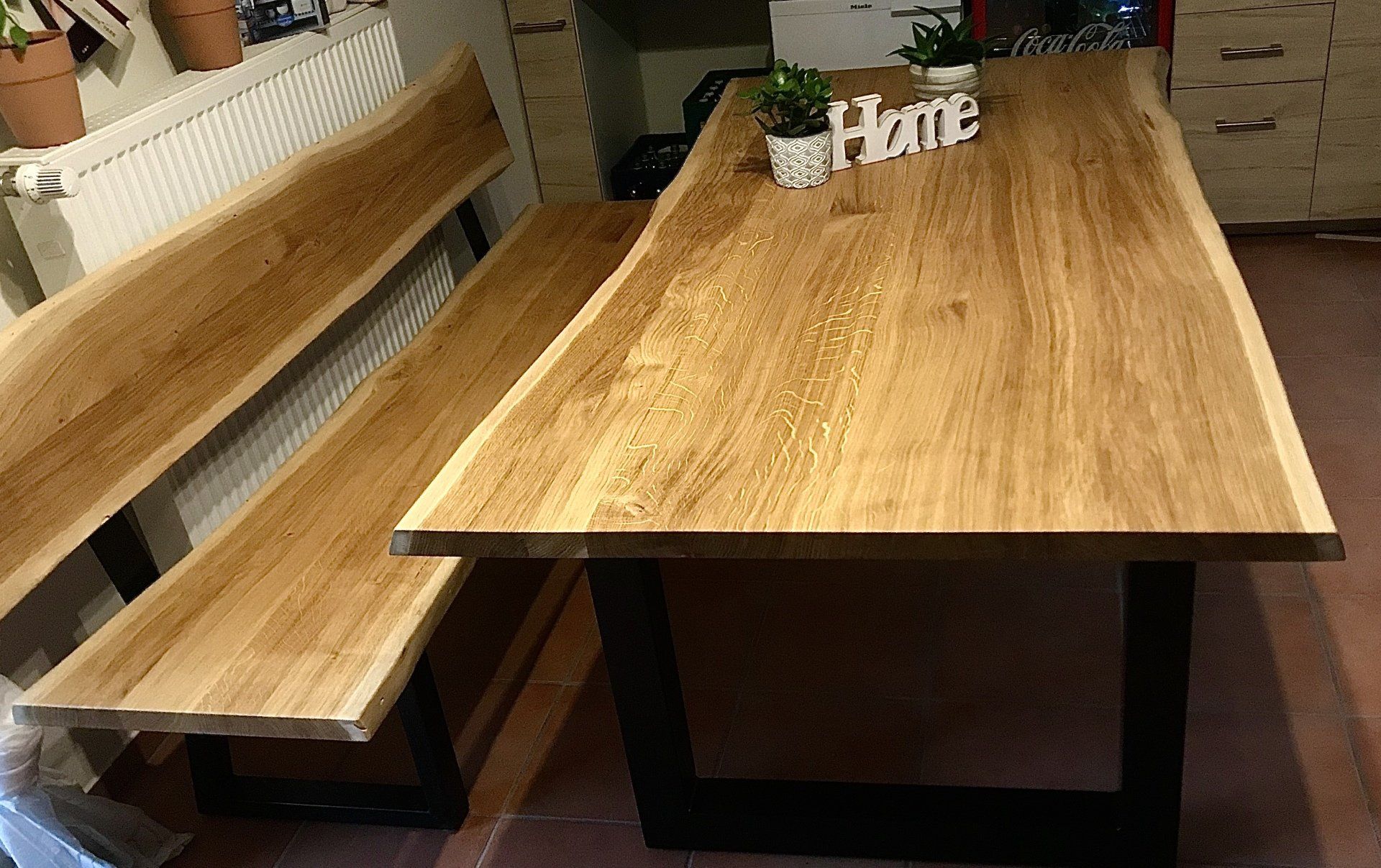 mit Baumkante und schwarzen Metallfüssen.