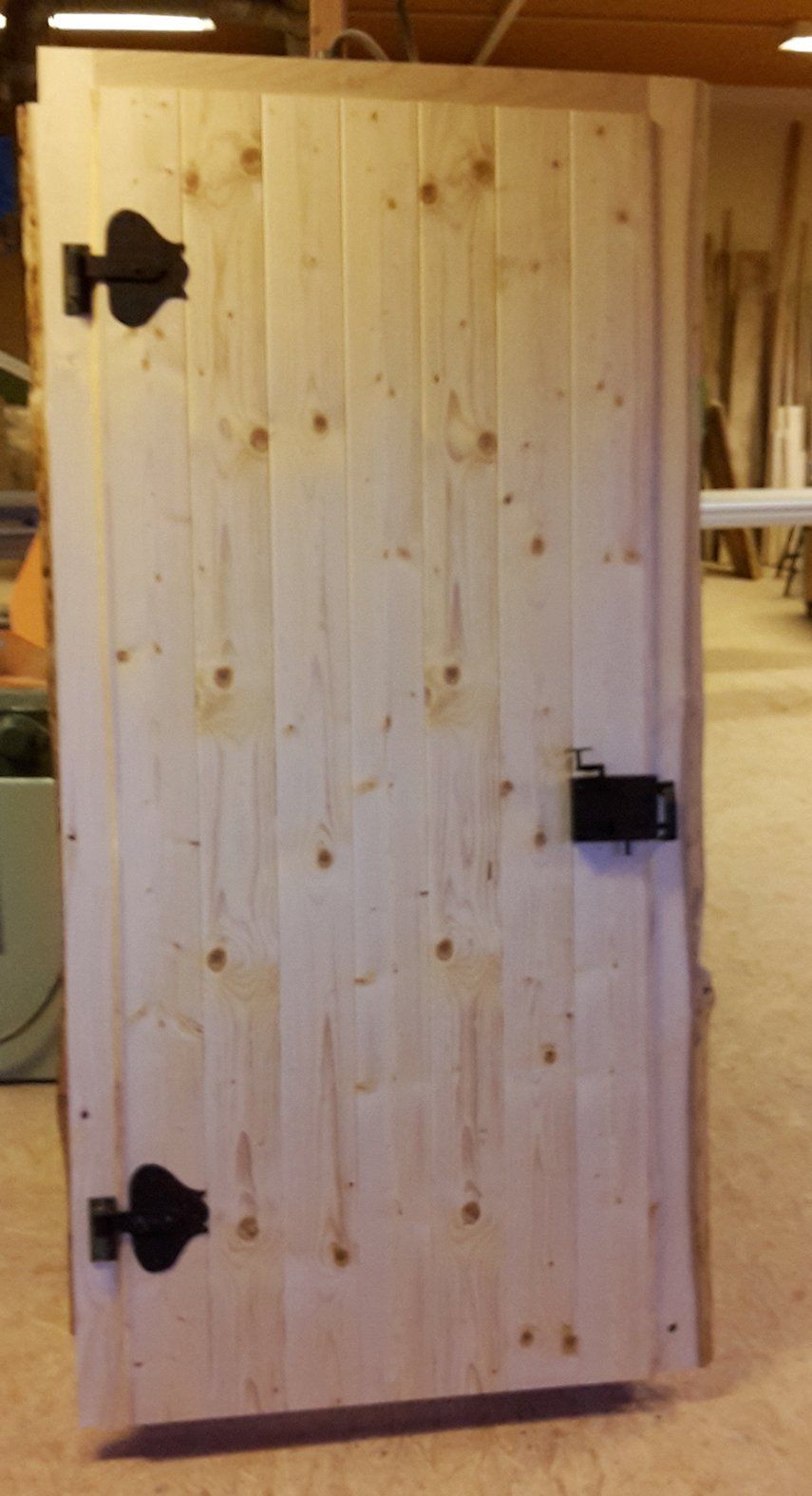 Zimmertüre in Fichte, geölt, alte Beschläge wurden wieder verwendet