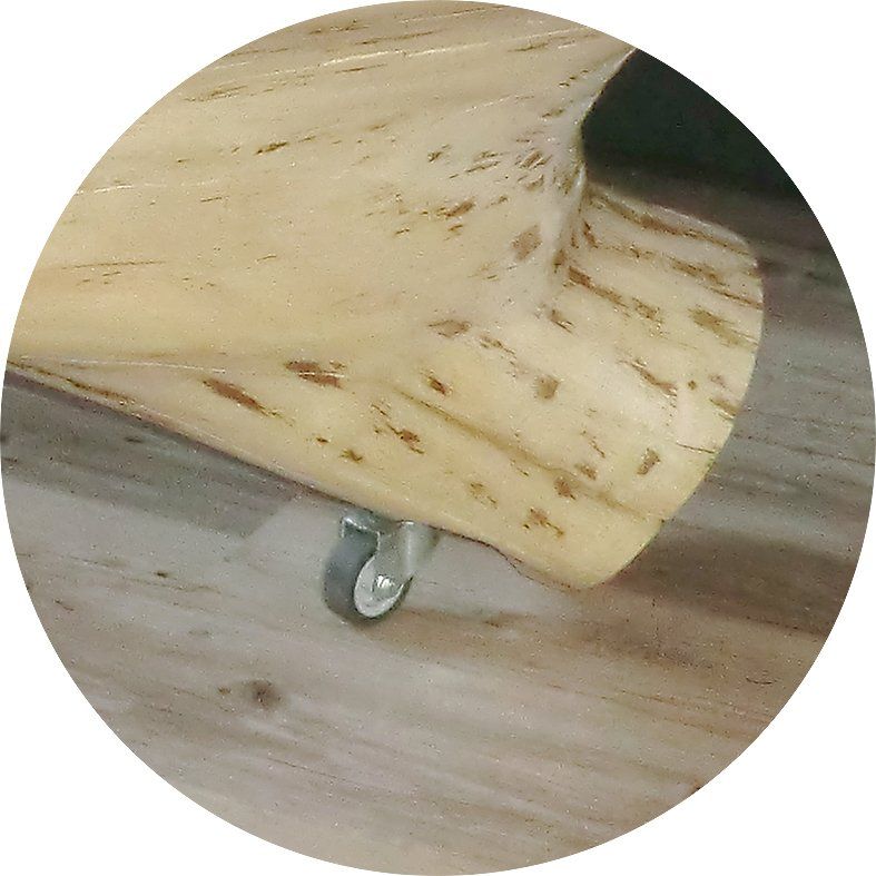 Bild2 bis 3:Wohnzimmertisch aus Eichenstamm, geölt, Standfuß aus 8-eckigem, schwarzen Metallrohr mit Rollen