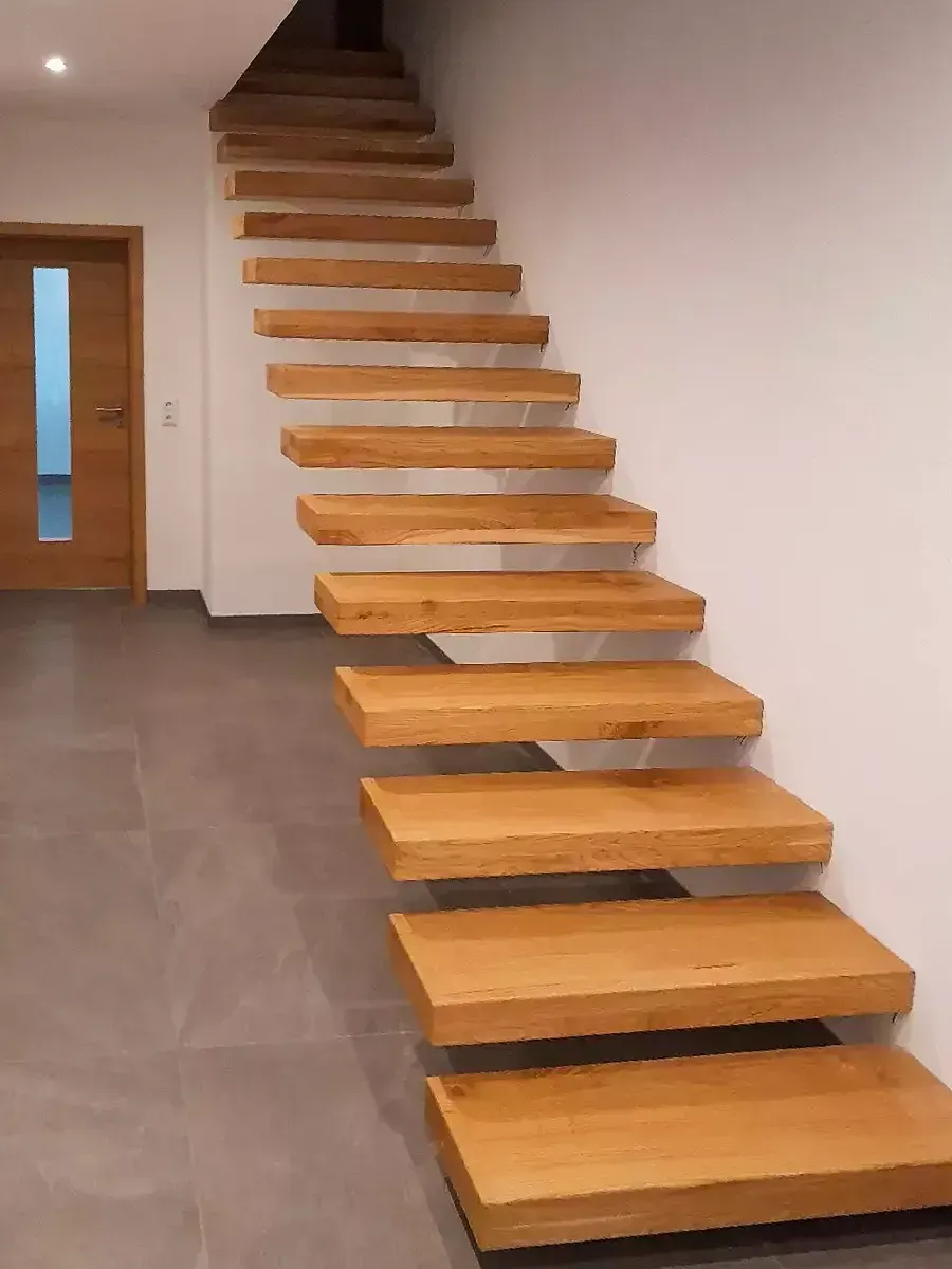 Eine schwebende Treppe aus Eiche in modernen Deisgn.