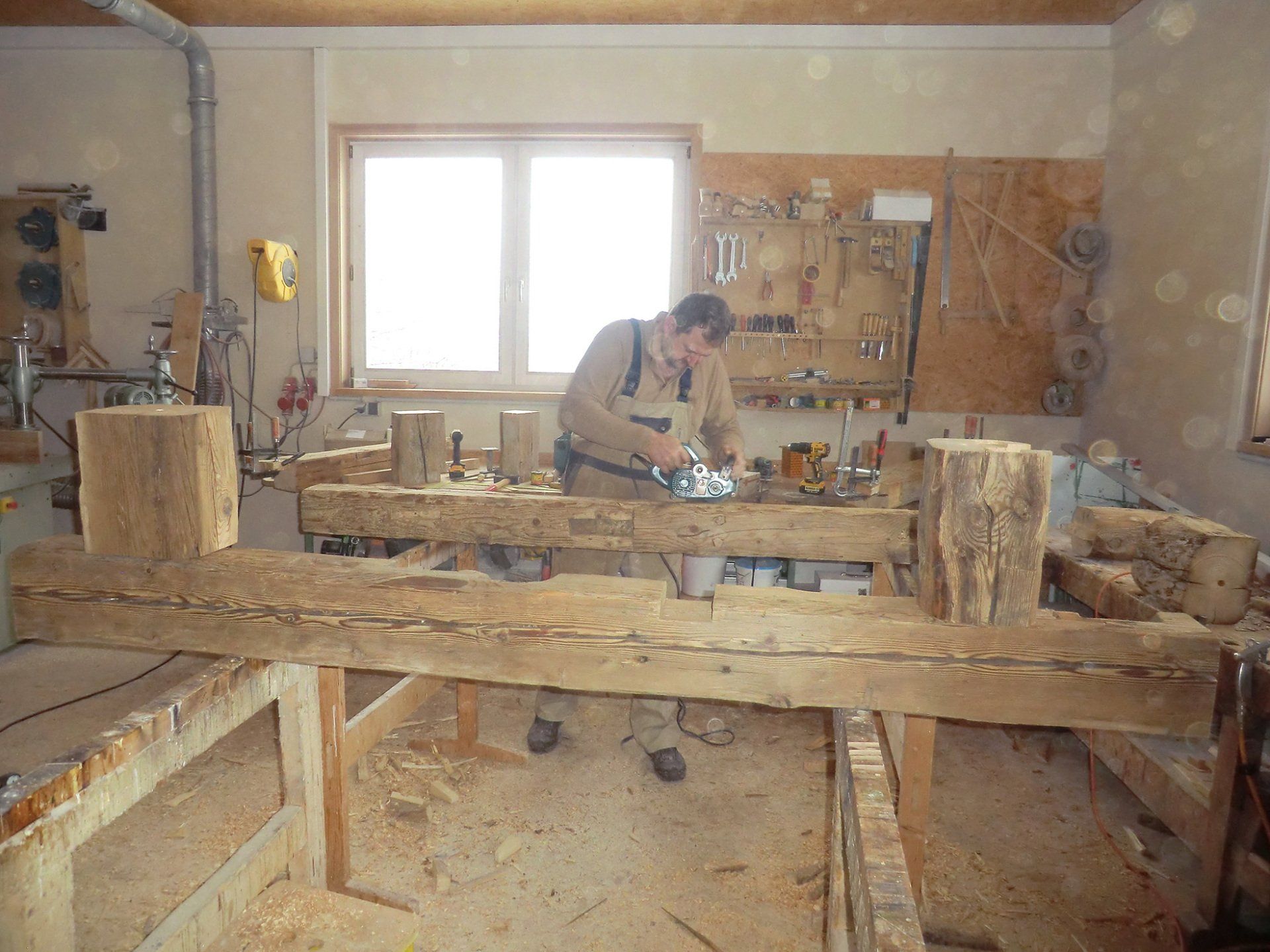 Diese Eingangstüre besteht aus alten Fichtenbalken- und brettern.