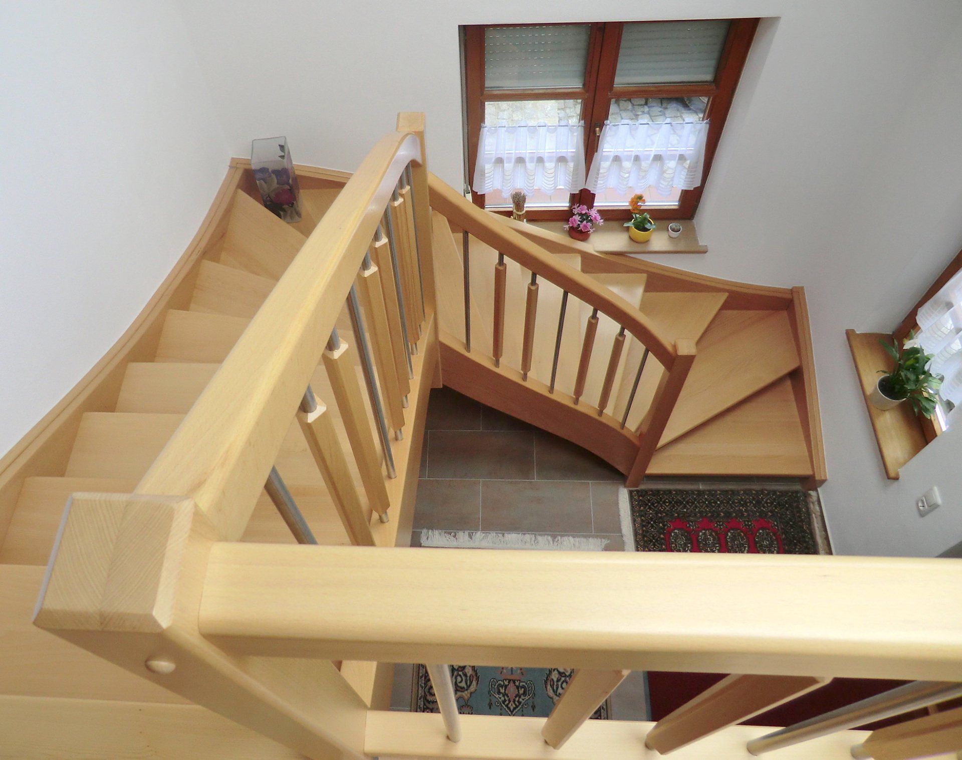 Bild1 bis 4:halbgewandelte Treppe in Buche, lackiert